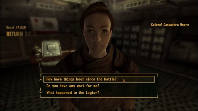 Jemand anderes, der ein wenig über das neue Vegas nach dem Spiel weiß (oder eine Vorstellung davon) ist offensichtlich Kazopert, der mir sagte, er glaube, dass die Legion, die mit Lanius endetDas tötet jeden, der sich ihm widersetzt. „.