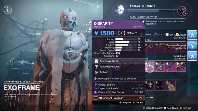 Der Exo-Frame auf der H.E.L.M. kann auch Dirbrale Engrams für Sie in Ungleichheit fokussieren. Zuerst müssen Sie einige Exo-Frame-Module verdienen, indem Sie saisonale Herausforderungen abschließen, und dann das kaufen Seraphische Waffe Fokussierung Upgrade. Wenn du’Wir können jetzt ein Dachgramm, einige legendäre Scherben und eine seraphische Regenergie verbringen, um Ihre Ungleichheit zu fokussieren.
