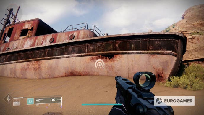 Wenn Sie sich die Nordseite dieses letzten Bootes ansehen, sehen Sie das verräterische Logo Lost Sector nebenbei und zeigen, dass Sie am richtigen Ort sind.
