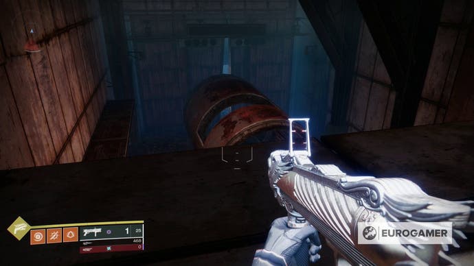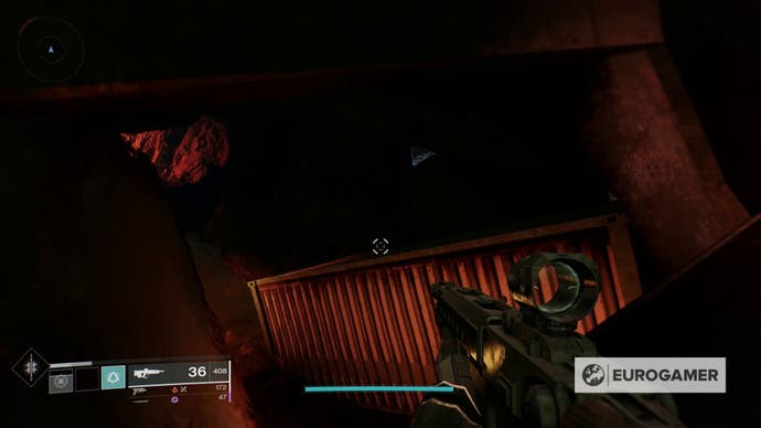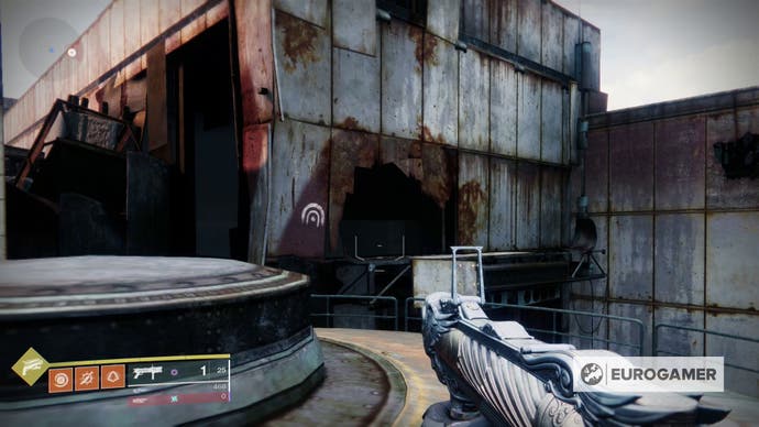 Schauen Sie sich einmal wieder auf dem Silo nach Nordwesten an. Sie werden jetzt eine gebrochene Wand mit dem Lost Sektorsymbol außen sehen.