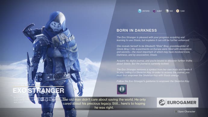 - Bringen Sie den Skelettschlüssel zum Exo Stranger in der Schöpfung (besuchen Sie den Riesenex)