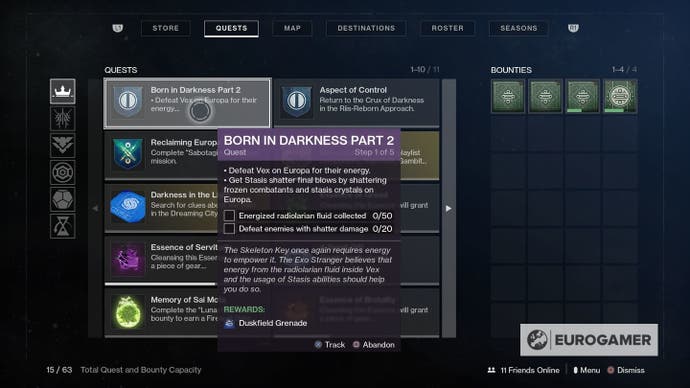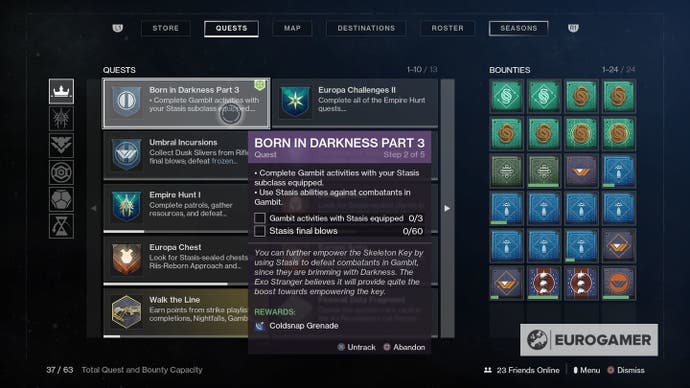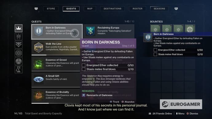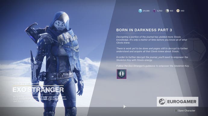 Das geborene in Darkness Quest ist in mehrere Teile unterteilt, wobei jeweils derselben Struktur folgt. Auf diese Weise spielen Sie Aktivitäten wie Streiks und Gambit, während Sie sich mit Ihren Stasis -Fähigkeiten wohler fühlen.