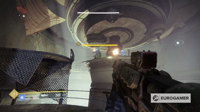 Sobald Sie das getan haben, laden Sie nach Europa zurück und gehen Sie nach links in Richtung Cadmus Ridge. Ihr Wegpunkt sollte Sie in die Ewigkeit führen und einen Cheffeind genannt Weniks, die Elite der Heilszeit. Töte ihn und seine Kumpels, um Fortschritte zu machen.