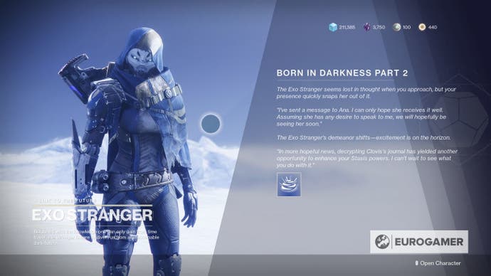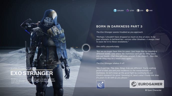 Sie haben also die Beyond Light -Kampagne abgeschlossen und haben die Born in Darkness Questline vom Exo Stranger übergeben.