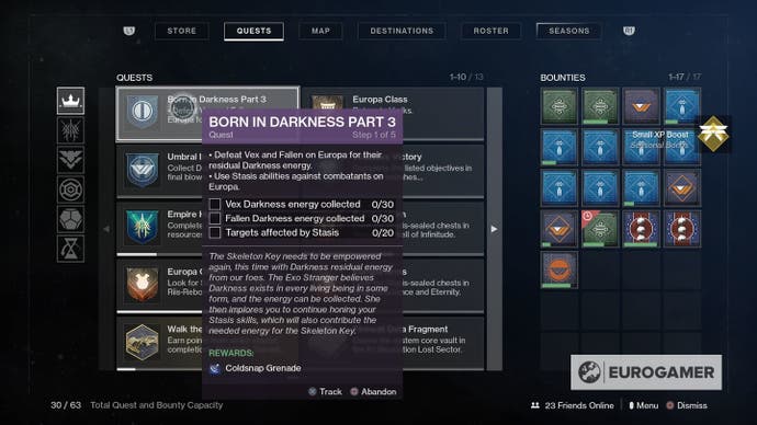Vervollständigen Sie die oben genannten und zwei neue Stase -Granat -Fähigkeiten – Duskfield und Coldsnap – sind Ihnen nach Abschluss 2 bzw. Teil 3 bei Ihnen.