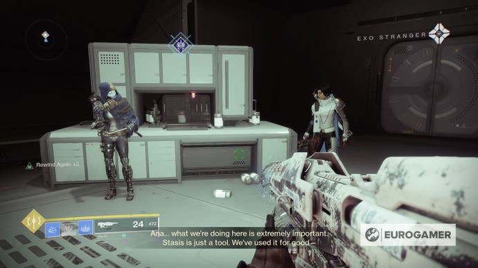 Jetzt, Gehen Sie zurück zum Exo -Fremden, Und es ist Zeit für eine echte Belohnung. Sobald Sie mit ihr sprechen, wird sie Ihnen eine neue Stasis -Granate namens Duskfield Grenade geben. Es ist toll. Benutze es.