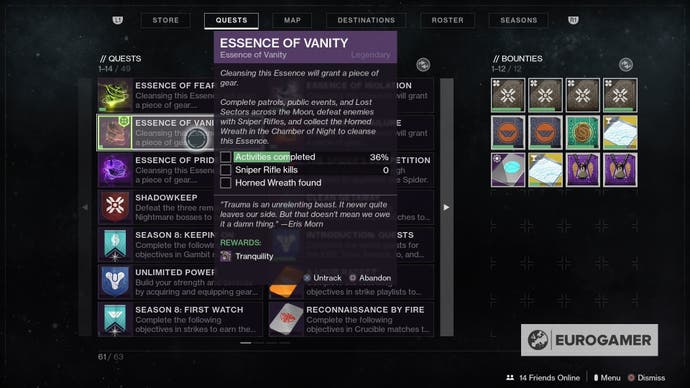 Jetzt ist es nur die andere Essenz von Vanity Quest -Schritten, die zu vervollständigen sind – und wenn Sie müssen Für eine weitere Quest.