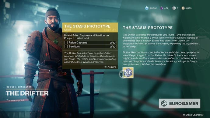 Leichter übersehen ist eine Questlinie des Drifters. Hier starten Sie den Stasis -Prototyp. Achten Sie also darauf, ihn zu besuchen, um loszulegen.