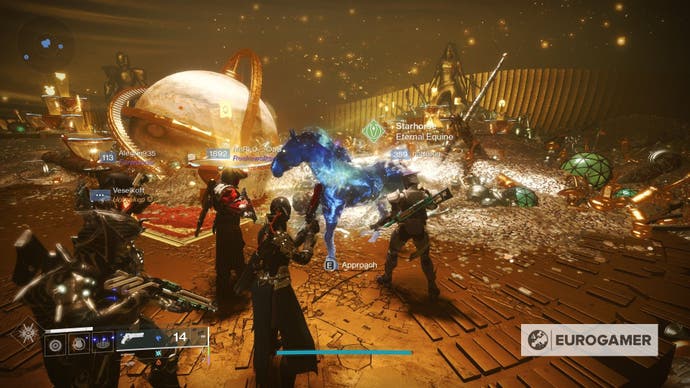 - Bringen Sie den Overkill (wöchentlich Silver Starhorse Bounty) mit: Besiege Kombattanten mit deinem Super, zerfälle Kämpfer mit hochschädigen Elementarschlägen und vervollständigen die Acitivy mit einer beeindruckenden Punktzahl (180.000 Punkte erforderlich)