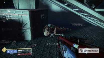 Im letzten Raum, in dem Sie dem Chef gegenüberstehen, ist der tote Exo auf der linken Seite.