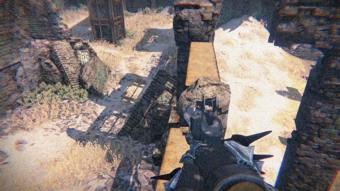Wenn Sie durch die Mitte der Karte gehen, sind Sie eine Reihe von Gebäuden, die Sie von eins zum nächsten laufen können (sie werden von zwei Capture -Punkten gebucht). Wenn Sie zwischen den Bildungen nach draußen reisen, befindet sich der Geist neben einer Kiste auf einem Felsvorsprung direkt zur Seite.