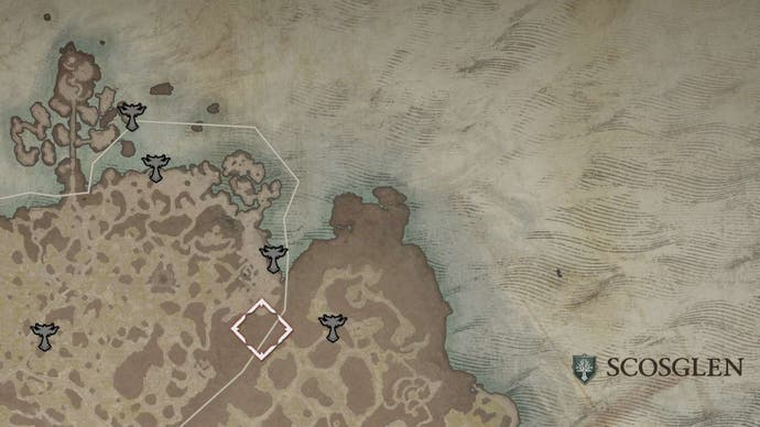 In diesem Leitfaden haben wir’Konzentrieren Sie sich auf die Region Scosglen, und Sie können einen Überblick über die Standorte für alle sehen 34 Altäre von Lilith über die Karte unten: