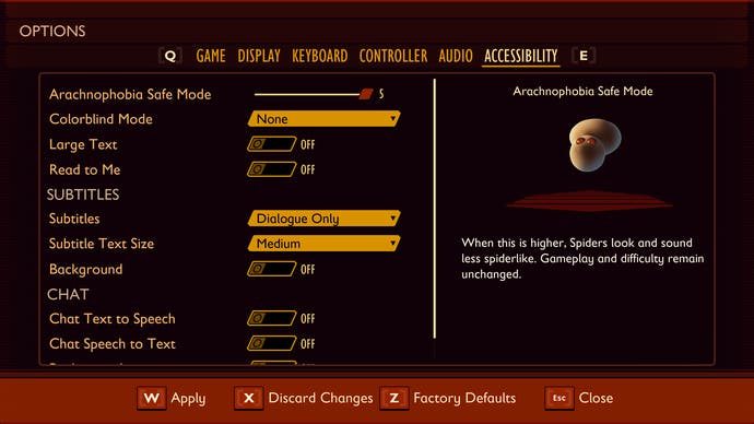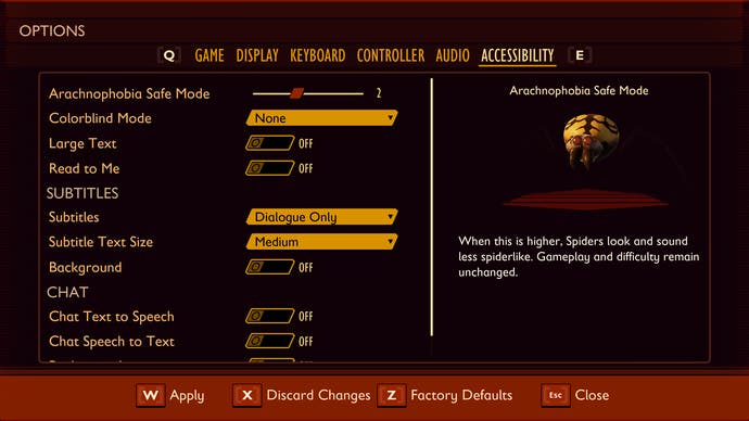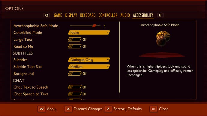 Ziel ist es nicht, das Spiel einfacher zu erleichtern – Spider -Feinde werden immer vorhanden sein und schwer zu besiegen sein. Stattdessen modifiziert die Option ihr visuelles Erscheinungsbild, um ihre spindeligen, haarigen kleinen Beine zu entfernen und dann ihre Körper zu blühen, bis sie nicht mehr spinnenartig sind.