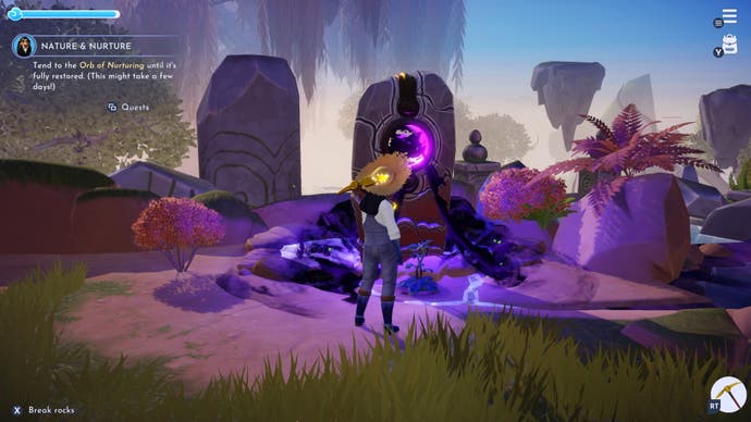 Wie man die Kugel der Pflege an der Säule für „Natur und Pflege“ pflanzt Disney Dreamlight Valley