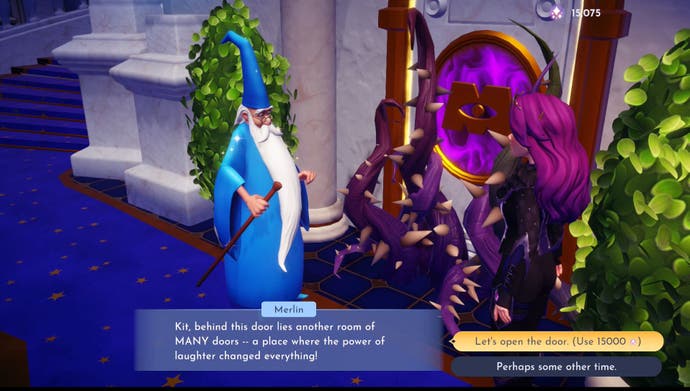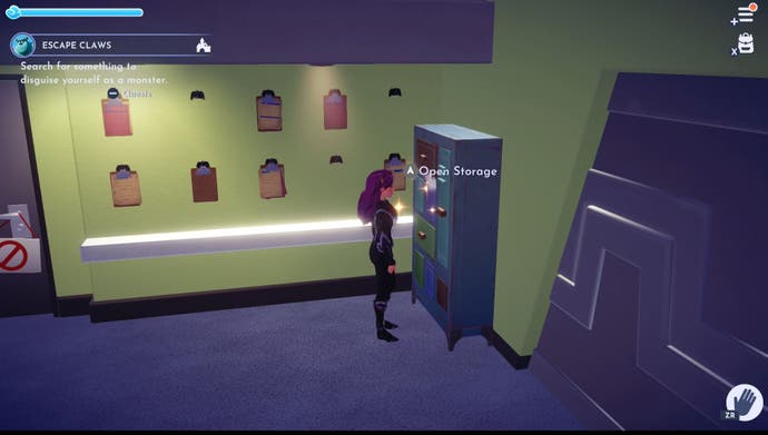 Ihr erster Schritt in Fluchtkrallen in Disney Dreamlight Valley soll die Tür zum Lachboden untersuchen. Es stellt sich heraus, dass Sie sich als Monster verkleiden müssen, wenn Sie diesen Boden betreten möchten. Öffnen Sie dazu den Speicherplatz links von der Stelle, an der Sie das Reich betreten.