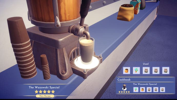 Nehmen Sie die Zutaten vom Theke und verwenden Sie die Maschine, um beide Kaffee zu machen. Mit diesen hergestellten Getränken beide an Mike übergeben.
