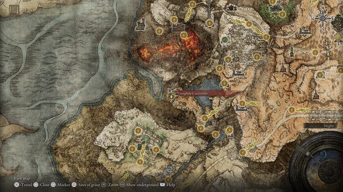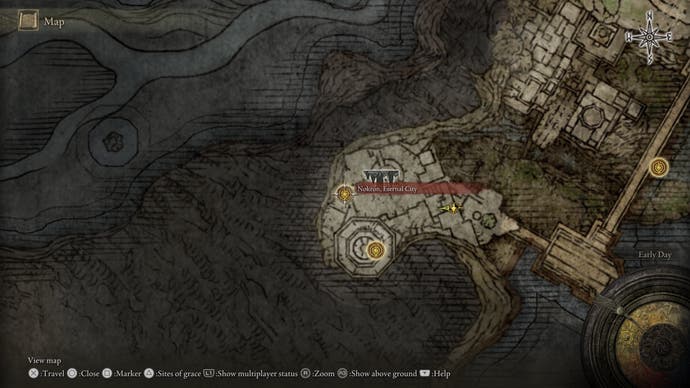 Wenn Sie diese Asche bekommen. Aber sobald Sie ihn geschlagen haben, stürzt ein Stern auf die Karte und schafft eine Öffnung für Nokron, die ewige Stadt. Der Eingang zu diesem unterirdischen Gebiet befindet sich südlich des Nebelholzes in der Schlafung.