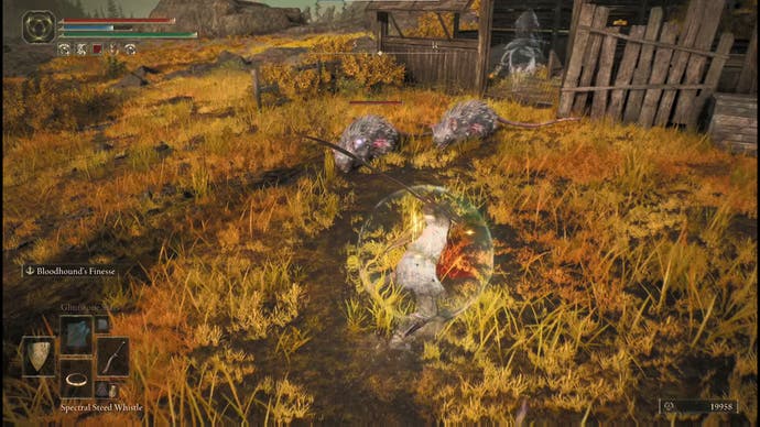 Sie müssen zur Westwindmühlenweide westlich des Windmühlendorfes im Norden des Altus -Plateaus gehen. Nehmen Sie sich den Ställen neben der Windmühle an und Sie werden einen Rattenschwarm sehen, einschließlich eines viel größeren Innenraums. Töte sie und greifen Sie dann die Geistasche.