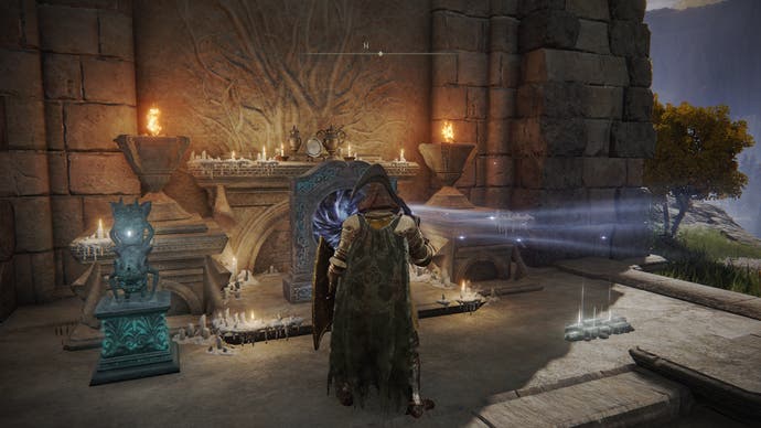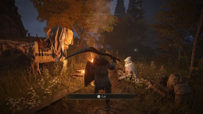 Um Geistäsche zu verwenden, brauchen Sie zuerst den Geist, der Bell nennt. Sie können dies frühzeitig freischalten, nachdem Sie die Kirche Elleh in der Nähe des Startbereichs besucht haben. Sobald Sie Ihr Pferd freigeschaltet haben, Die Fähigkeit, sich zu verbessern und schnell in den Roundtable -Hold zu reisen, in die Kirche von Elleh zurückzukehren und Sie sollten auf einen neuen Charakter stoßen – in unserem Fall war es nachts und die Gegend ist von Nebel umgeben.