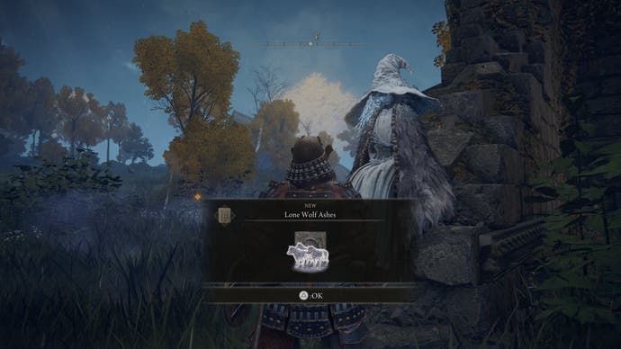 Sprechen Sie mit der Hexe und sie wird Ihnen den Geist geben, der Bell nennt, sowie die einsame Wolfasche, um Ihnen den Einstieg zu erleichtern. Wenn Sie sie aus irgendeinem Grund vermissen, ist es auch möglich, sie bei den Rundtable -Hold bei den Twin Maiden -Schalen zu kaufen.