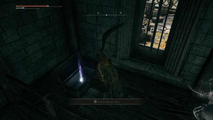 Aber wenn Sie nur einen durchdrungenen Schwertsteinschlüssel haben, dann verwenden Sie ihn auf dem Teleport, in dem Sie nach Norden stehen. Dieses Teleport bringt Sie in die Kapelle der Vorfreude, in der Sie gegen einen Mini-Boss kämpfen müssen. Nachdem Sie es besiegt haben, folgen Sie dem Weg zur Kapelle, aber suchen Sie nach einem Eingang rechts, der Sie nach oben und zu einer Truhe mit der Asche führt.