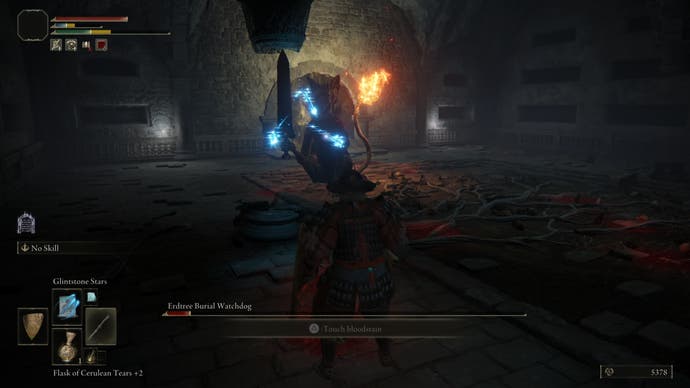 Sie erhalten eine Nachricht, sobald Sie alle Fackeln angezündet haben. Kehren Sie zum Hallowhorn -Gelände im Südosten zurück und Sie werden das Skelett des Hirsches am Ende leuchten. Berühren Sie es und Sie werden in einen anderen Bereich transportiert. Es kann schwierig sein, zu schlagen, wenn es in der Luft schwimmt und springen und auch teleportieren kann, aber es besiegen und die Asche werden Ihnen gehören.