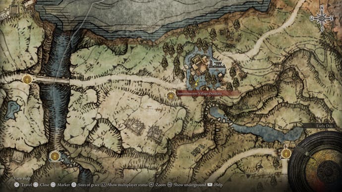 Wenn Sie diese Asche bekommen, Ein spektrales Skelett, das Sie auf seinem Beiboot kämpft (nein, wirklich), obwohl er auch andere Skelettkumpels beschwören kann, um zu helfen. Sie finden seinen Standort im überfluteten Summewater -Dorf östlich von Limgrave.