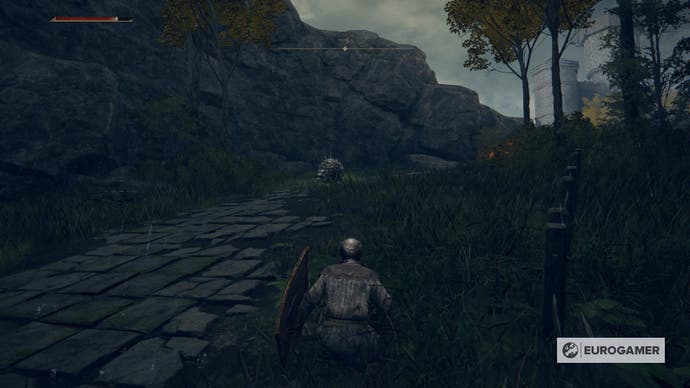 Anstatt auf den Riesen zu gehen, gehen Sie links von der Gegend durch einen Wald. Sie werden in einem kleinen Sumpf mit einigen Feinden landen, aber Sie können sie leicht vermeiden. Nach dieser Straße gibt es weniger Chancen für den Bogenschützen, Sie zu holen.