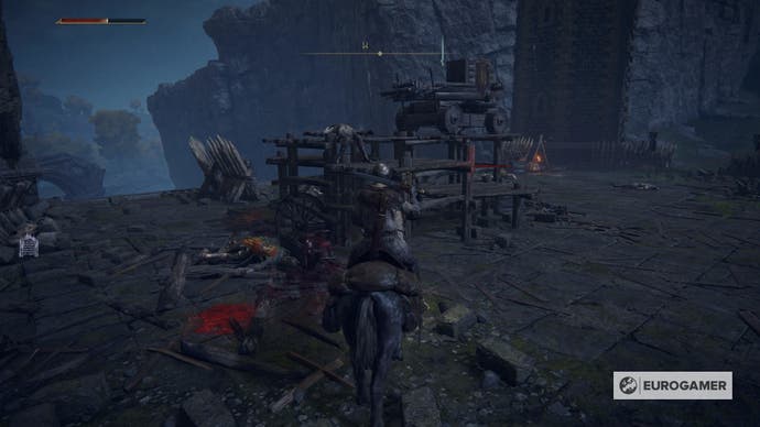 Während Sie anfangen können, jeweils ein oder zwei Feinde einzunehmen, wenn Sie sich vorsichtig nähern, und sogar Geistereische herbeirufen Um Ihnen zu helfen, sollten Sie es nicht tun. Die Sache ist, es gibt einen Soldaten, der eine schwere stationäre Armbrust hinter den feindlichen Linien verwendet. Er wird anfangen, die Waffen zu benutzen, sobald Sie sich der Brücke nähern.