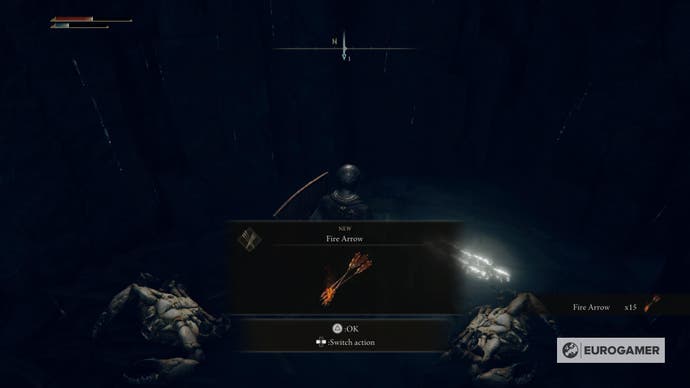 Sie werden auch das Kartenfragment des Gebiets sehen Rechts, aber zögern Sie nicht zu viel – wählen Sie es schnell aus und kehren Sie zu Torrent zurück. Es gibt einen riesigen Bogenschützen weit weg, der anfangen, riesige Pfeile auf Sie zu schießen.