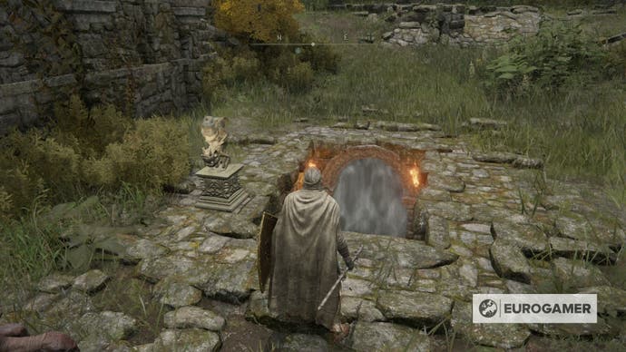 Gegen Ende des Tutorial -Bereichs des Standing Friedhofsbereichs bemerken Sie einen Eingangsbereich, der von einem Stonesword -Schlüssel gesperrt ist.
