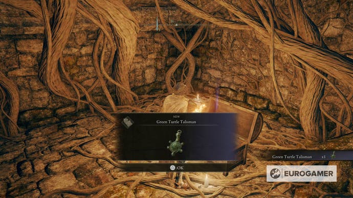 - Südöstlich des Dorfes Summewater befindet sich eine Krypta mit einer Höhle mit dem Green Turtle Talisman, was Ihre Ausdauer-Erholung erhöht: