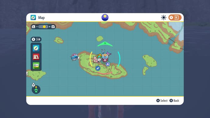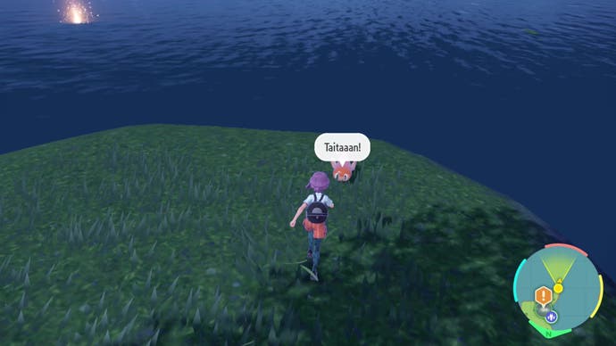 Wie immer erhalten Sie einen Anruf von Arven, wenn Sie sich nähern. Sie möchten nach dem kleinen orangefarbenen Fisch suchen Pokémon sagen „Taitaaan!“Auf der südlichsten Spitze der Südostinsel: