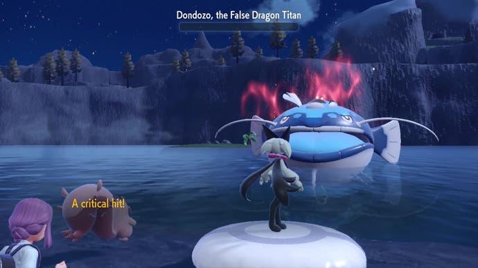 Dondozo – auch bekannt als die Falsch Dragon Titan – ist einer von fünf Titan Pokémon in Pokémon Scharlach und Violett.