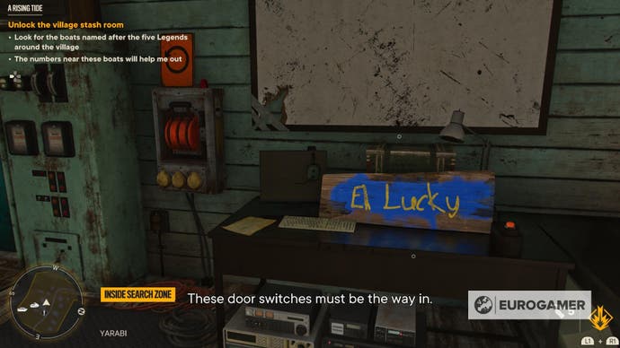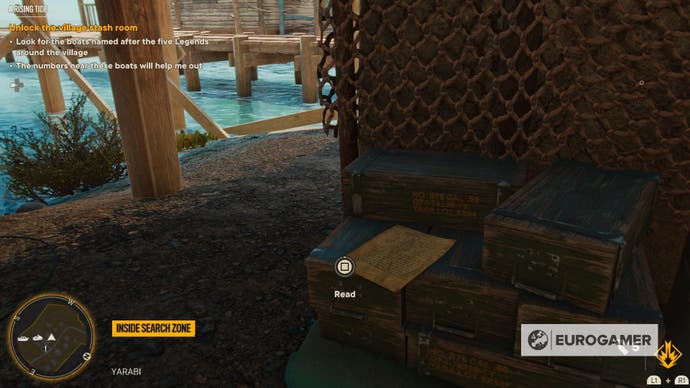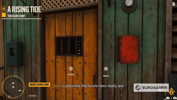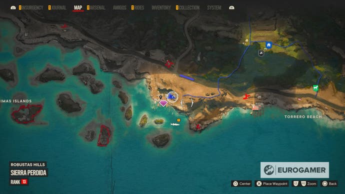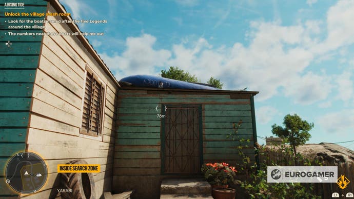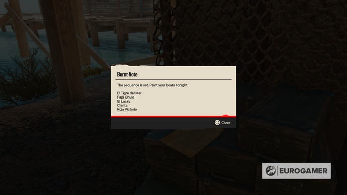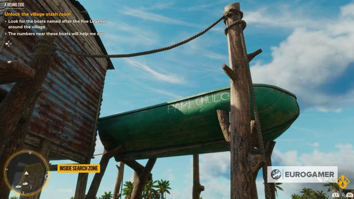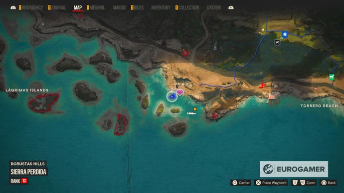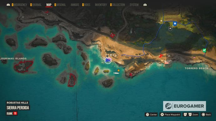 Dieser beginnt mit der Aufnahme einer Notiz von einem Haus in der Yarabi -Küste. Dies befindet sich in der südlichen Ecke von Robustas Hills. Das Spiel wird den Ort erkennen, wenn Sie ankommen, aber wenn überhaupt, suchen Sie nach dem Haus mit einem lila Boot an der Front, das heißt “El Tigre del Mar”.