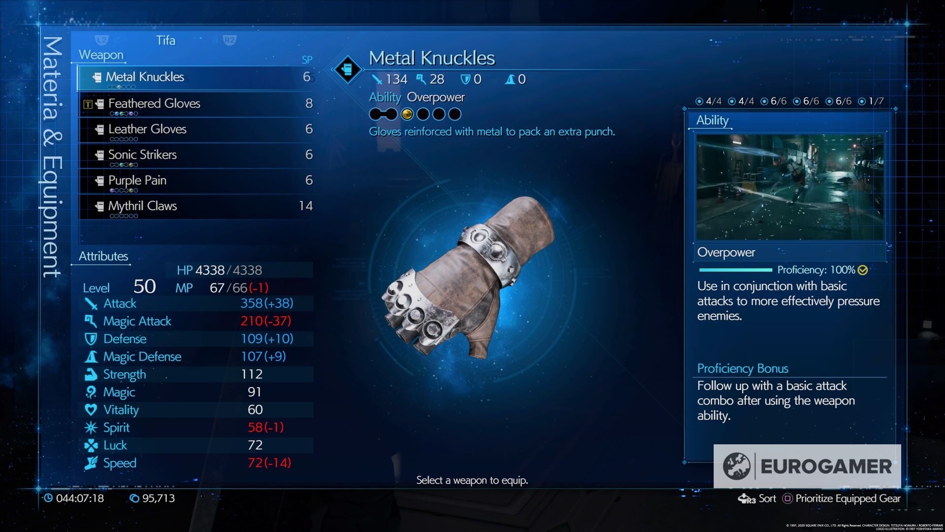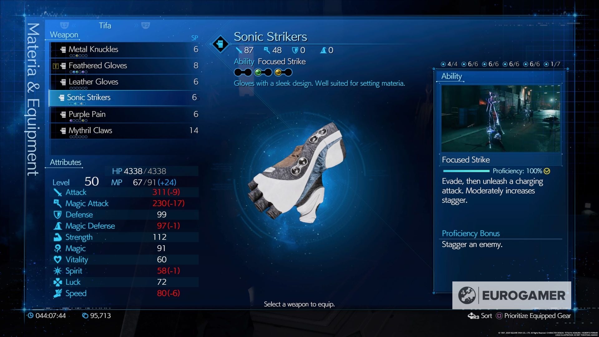 Sie können sehen, welche Materia Slots, die sie haben und wie hoch Ihre Waffe ist, um weitere Upgrades auf der ganzen Linie durch den längeren Einsatz im Kampf freizuschalten.