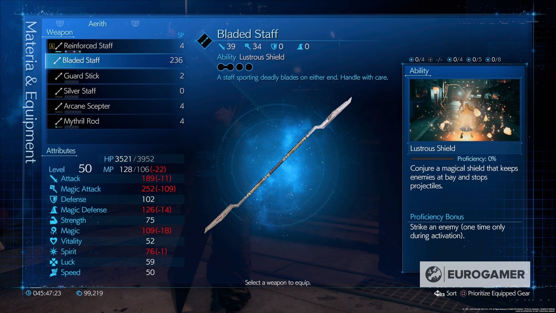 Mythril -Stabstatistiken: 24 Angriff, 92 Magie