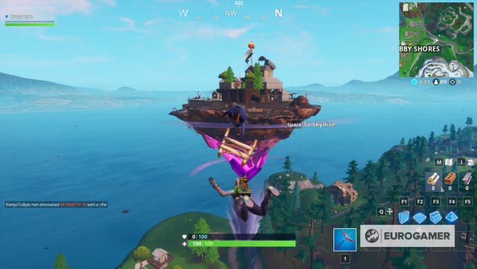 Der einfachste Weg, es zu erkennen, ist es, zu Beginn des Spiels aus dem Schlachtbus zu schauen, wo die Insel in der Luft eindeutig sichtbar sein wird. Sobald Sie es entdeckt haben, fliegen Sie darauf zu.