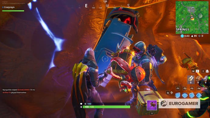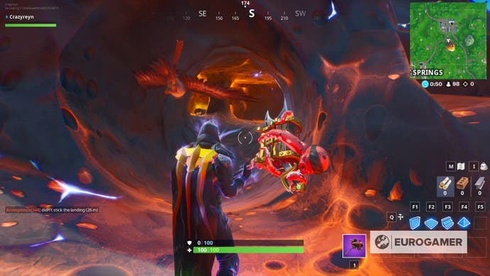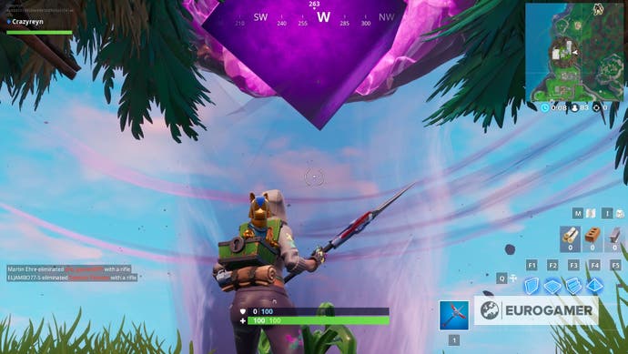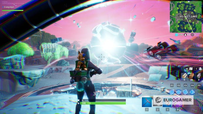 Fortnite Berühren Sie einen riesigen, leuchtenden Würfel, betreten Sie den Riss oberhalb des Beuteseees und suchen