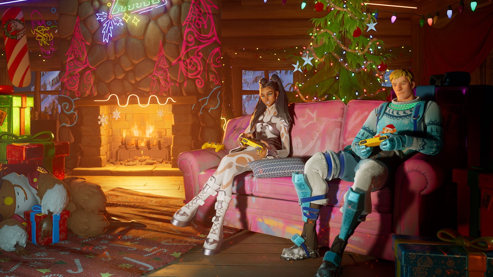 Sie werden dann zu einer schönen Fireside -Kabine gebracht, in der Sie Geschenke öffnen können jeden Tag und komplette spezielle Winterfest 2022 -Herausforderungen, wie Pizza -Scheiben zu finden.