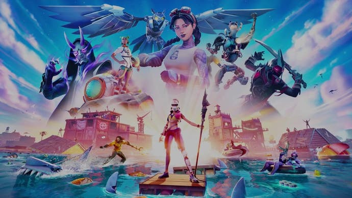 Um dies zu feiern, hat der Battle Pass auch ein Wasserthema, in dem eine Vielzahl neuer Skins einschließlich Kit, Jules und der Tier 100 Eternal Knight, sowie neue Emotes, Waffenverpackungen und die Fähigkeit, einen eigenen benutzerdefinierten Regenschirm zu erstellen.