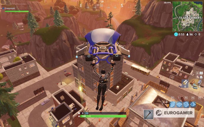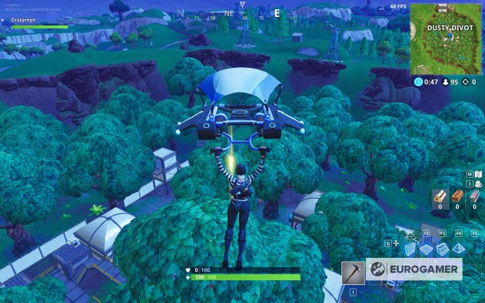 Im Gegensatz zu Fortnite Briefe, diese sind viel weniger unzugänglich. Obwohl sie aus der Ferne leicht zu erkennen sind, sind sie hoch in der Luft – weiter als bei jedem Sprung. Und nein, du kannst sie nicht schnappen, während du aus dem Schlachtbus gleitet – wir haben es versucht!