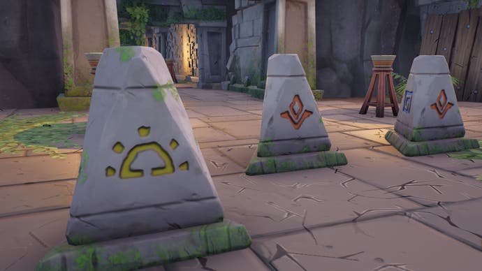 Je nachdem, welches Layout Sie erhalten, wird das Runensymbol entweder sein auf dem Boden in einer Ecke eines Steingebäudes oder im Freien in der Nähe einer beschädigten Mauer. Sie werden wissen, dass Sie nahe sind, wenn Sie in der Ferne einen Neustartwagen sehen können.