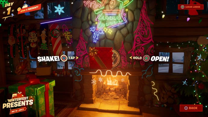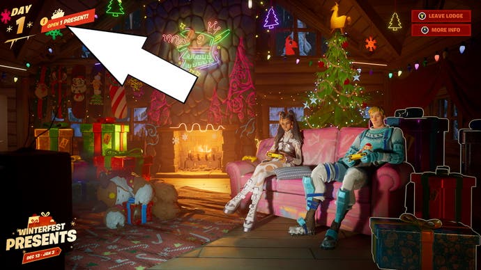 Um kostenlose Winterfest -Belohnungen in zu erhalten Fortnite müssen Sie müssen Gehen Sie in die gemütliche Lodge und offene Geschenke. Ein neues Geschenk wird jeden Tag bis zur Verfügung stehen Das Winterfest endet am 3. Januar 2023 um 9 Uhr EST, 14 Uhr in Großbritannien (GMT).