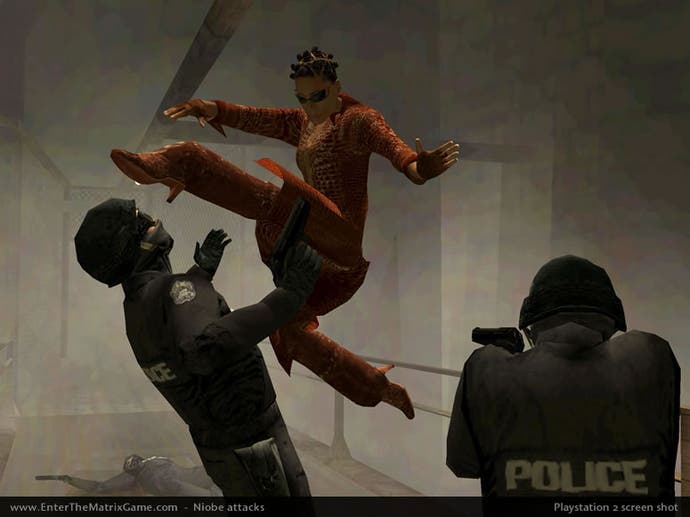 Das Spiel findet kurz vor den Ereignissen des zweiten Films in der Trilogie stattDie Matrix der früher. Nachdem Ghost und Niobe dies erreicht haben, nimmt die Handlung eine andere Wendung und konzentriert sich auf ihre Bemühungen, verschiedene andere Besatzungen zu extrahieren und im Allgemeinen den Mist aus einem unendlichen Ansturm von desillusionierten Polizisten und SWAT-Teammitgliedern zu werfen, während sie die Aussagen von Ausstellungen von Aufmerksamkeit eröffnenVerschiedene „Agenten“ mit kugelhaftem Dodging.