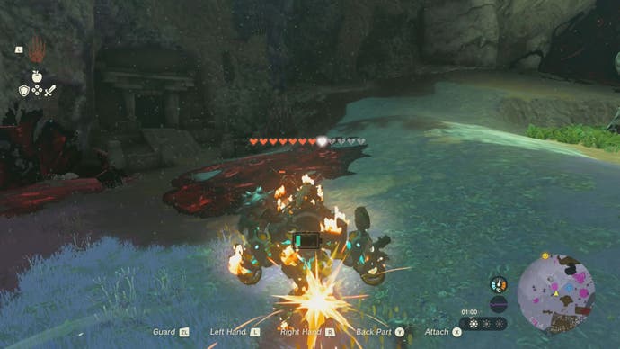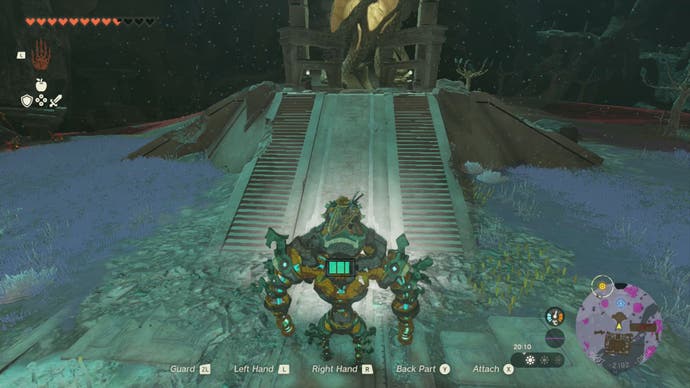 Schließlich können Sie eine Vielzahl von Objekten und Zonai -Geräten sowohl an den Armen als auch an der Rückseite des Konstrukts in ähnlicher Weise wie Sie die Sicherung verwenden. Diese Anhänge können jederzeit umgeschaltet werden, aber sie können auch brechen. Stellen Sie daher sicher, dass Sie sie im Auge behalten.