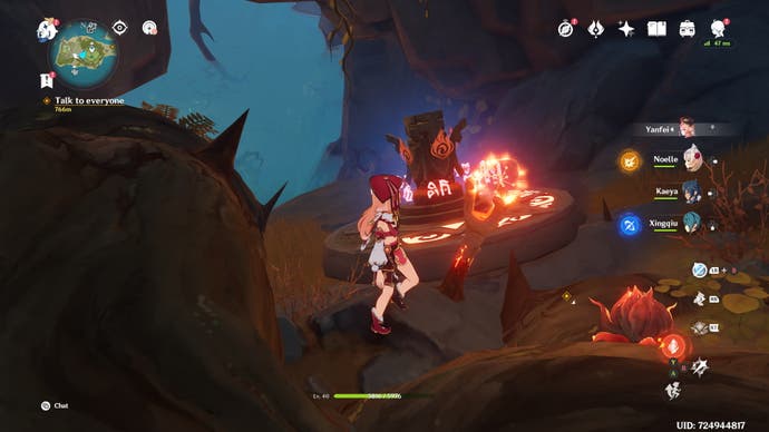 Wenn Sie während der Geschichte nach der Muschel suchen, hat dies nach der Party ein Gespräch über Fischl und Drachen, nachdem sie hier transportiert wurden. In Ihrer markierten Quest werden Sie aufgefordert, das Gerät zu bedienen, um den Pfad zu reparieren „.