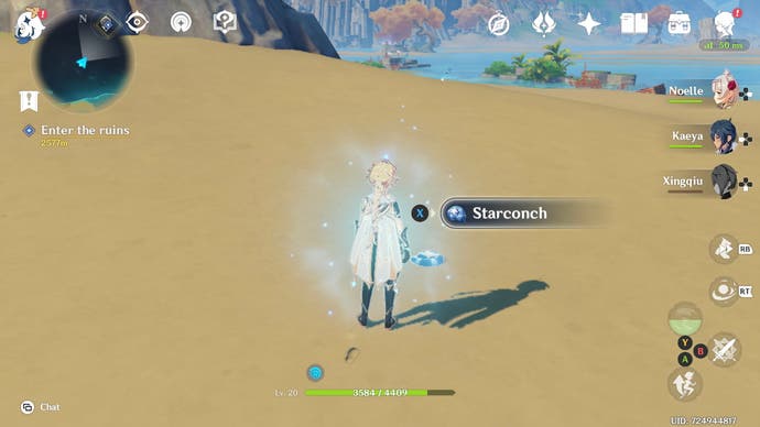 Denken Sie daran, wenn Sie in Ihrer eigenen Welt aus dem StarConch ausgehen, können Sie in Co -OP in einen anderen Weltstaat reisen, um das Aufstiegsmaterial auf der Version von Liyues Beaches aufzunehmen. Denken Sie daran, zu fragen, ob es zuerst in Ordnung ist!