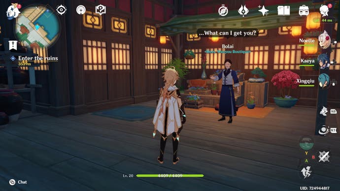 Wanyou Boutique liegt unter den nördlichen Docks von Liyue Harbor. Sie müssen mit Bolai sprechen, um einen für 1.000 Mora zu kaufen, aber es gibt eine Grenze für X5 -Sternenkalkeln alle drei Tage.