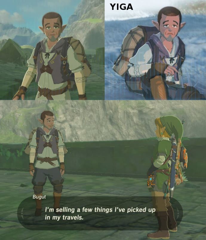 Wie von Just Glookingfordronagon auf dokumentiert Reddit, Die von den Yiga verwendeten „Verkleidungen“ sind „1: 1 Klone anderer, richtig benannter NPCs, die irgendwo existieren“ in der Welt des Spiels.